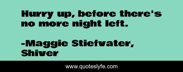 "Maggie Stiefvater, Shiver Quotes." Quoteslyfe.com, 2025. Sun. 07 Dec. 2025. <https://www.quoteslyfe.com/quote/Hurry-up-before-there-s-no-more-120368>.