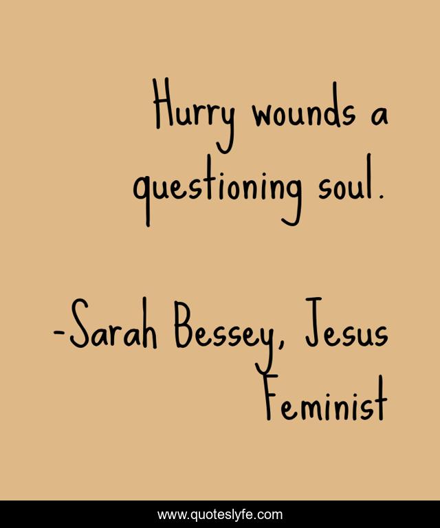 "Sarah Bessey, Jesus Feminist Quotes." Quoteslyfe.com, 2025. Sat. 06 Dec. 2025. <https://www.quoteslyfe.com/quote/Hurry-wounds-a-questioning-soul-193141>.