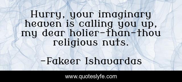 "Fakeer Ishavardas Quotes." Quoteslyfe.com, 2025. Mon. 08 Dec. 2025. <https://www.quoteslyfe.com/quote/Hurry-your-imaginary-heaven-is-calling-you-121098>.
