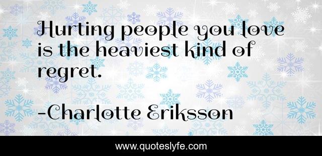 This page presents the quote "Hurting people you love is the heaviest kind of regret.". Author of this quote is Charlotte Eriksson. This quote is about heavy, hurting, love, regret, heaviest, kind, hurt, pain, friendships,.