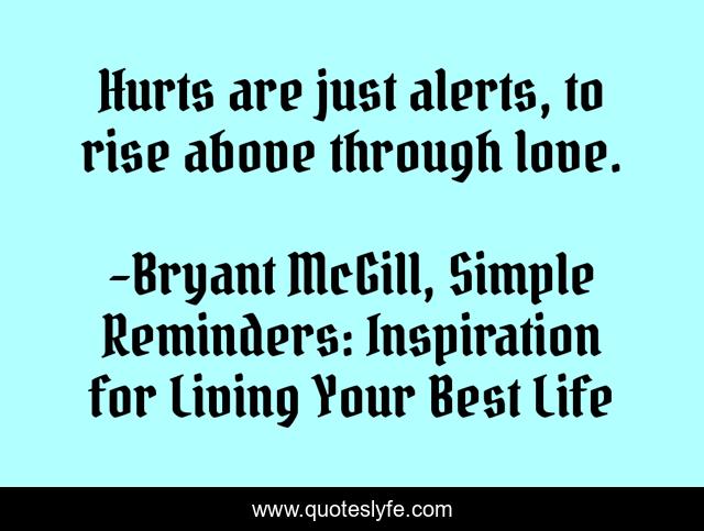 "Bryant McGill, Simple Reminders: Inspiration for Living Your Best Life Quotes." Quoteslyfe.com, 2025. Fri. 05 Dec. 2025. <https://www.quoteslyfe.com/quote/Hurts-are-just-alerts-to-rise-above-179052>.