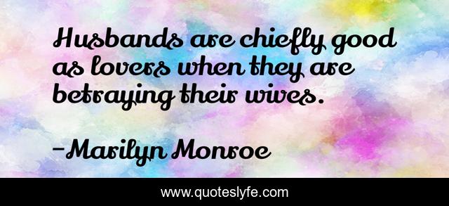 This page presents the quote "Husbands are chiefly good as lovers when they are betraying their wives.". Author of this quote is Marilyn Monroe. This quote is about relationships, humor,.
