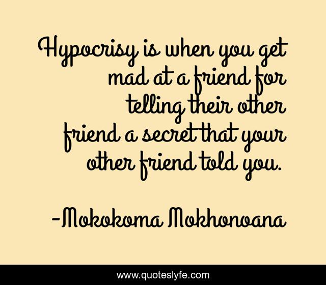 Hypocrisy is when you get mad at a friend for telling their other friend a secret that your other friend told you.