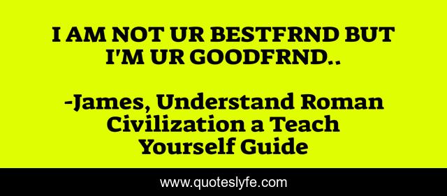 This page presents the quote "I AM NOT UR BESTFRND BUT I'M UR GOODFRND..". Author of this quote is James, Understand Roman Civilization a Teach Yourself Guide. .