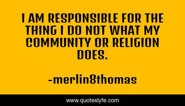 This page presents the quote "I AM RESPONSIBLE FOR THE THING I DO NOT WHAT MY COMMUNITY OR RELIGION DOES.". Author of this quote is merlin8thomas. This quote is about i, freedom, community, religion, responsibility, my,.