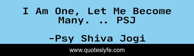This page presents the quote "I Am One, Let Me Become Many. .. PSJ". Author of this quote is Psy Shiva Jogi. This quote is about spirituality, religious,.