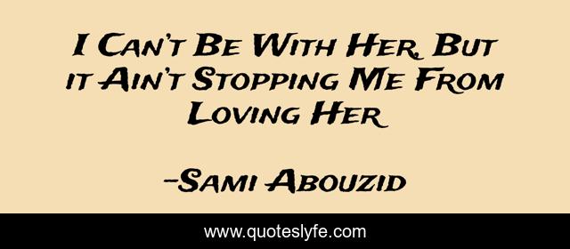 This page presents the quote "I Can’t Be With Her, But it Ain’t Stopping Me From Loving Her". Author of this quote is Sami Abouzid. This quote is about love, affection,.