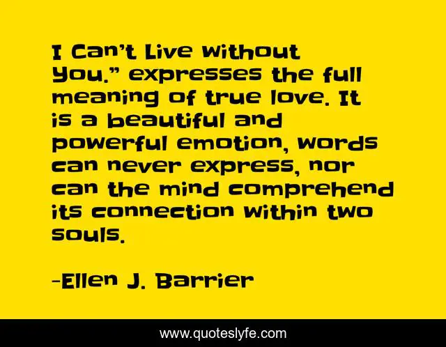 This page presents the quote "I Can’t Live without You.” expresses the full meaning of true love. It is a beautiful and powerful emotion, words can never express, nor can the mind comprehend its connection within two souls.". Author of this quote is Ellen J. Barrier. This quote is about true-love, spiritual, romance-love, passionate-love, love, affection, inspiration,.