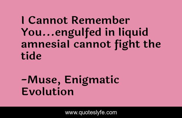 "Muse, Enigmatic Evolution Quotes." Quoteslyfe.com, 2025. Sun. 07 Dec. 2025. <https://www.quoteslyfe.com/quote/I-Cannot-Remember-You-engulfed-in-liquid-120486>.