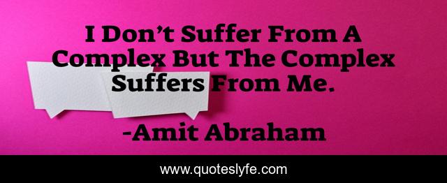 "Amit Abraham Quotes." Quoteslyfe.com, 2025. Fri. 05 Dec. 2025. <https://www.quoteslyfe.com/quote/I-Don-t-Suffer-From-A-Complex-95319>.