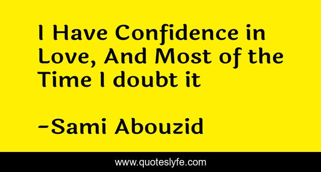 This page presents the quote "I Have Confidence in Love, And Most of the Time I doubt it". Author of this quote is Sami Abouzid. This quote is about love, affection,.