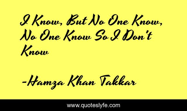 This page presents the quote "I Know, But No One Know, No One Know So I Don't Know". Author of this quote is Hamza Khan Takkar. .