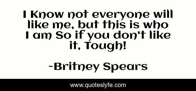 This page presents the quote "I Know not everyone will like me, but this is who I am So if you don't like it, Tough!". Author of this quote is Britney Spears. .