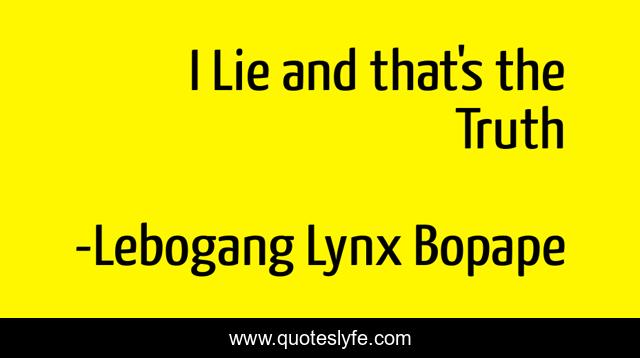 "Lebogang Lynx Bopape Quotes." Quoteslyfe.com, 2025. Sat. 06 Dec. 2025. <https://www.quoteslyfe.com/quote/I-Lie-and-that-s-the-Truth-130764>.