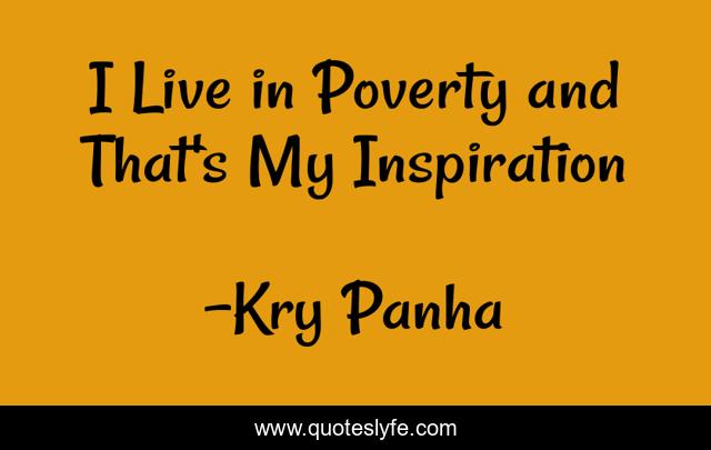 This page presents the quote "I Live in Poverty and That's My Inspiration". Author of this quote is Kry Panha. This quote is about life, depressed, reality, poverty, hope, inspiration,.