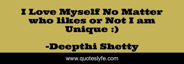 This page presents the quote "I Love Myself No Matter who likes or Not I am Unique :)". Author of this quote is Deepthi Shetty. .