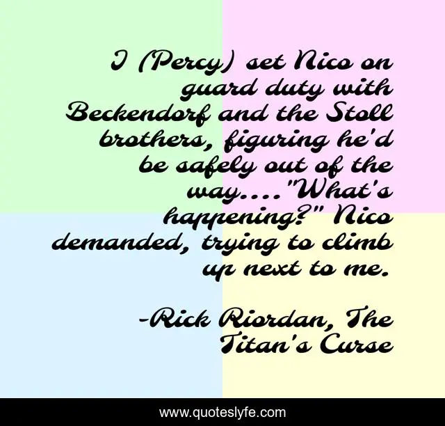 "Rick Riordan, The Titan's Curse Quotes." Quoteslyfe.com, 2025. Fri. 05 Dec. 2025. <https://www.quoteslyfe.com/quote/I-Percy-set-Nico-on-guard-duty-244792>.