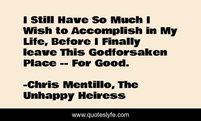 "Chris Mentillo, The Unhappy Heiress Quotes." Quoteslyfe.com, 2025. Sun. 07 Dec. 2025. <https://www.quoteslyfe.com/quote/I-Still-Have-So-Much-I-Wish-80288>.