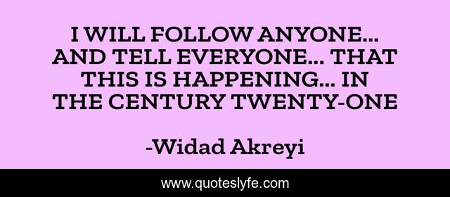 This page presents the quote "I WILL FOLLOW ANYONE... AND TELL EVERYONE... THAT THIS IS HAPPENING... IN THE CENTURY TWENTY-ONE". Author of this quote is Widad Akreyi. This quote is about widad-akrawi, human-rights, peace, yazidis, civil-society, defend-international, inspirational, enthusiasm, war,.