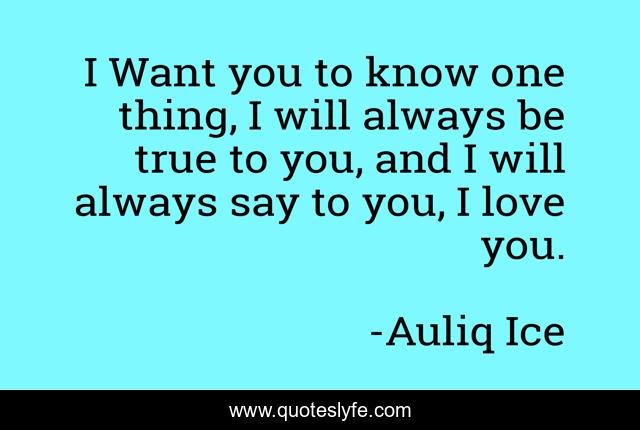 This page presents the quote "I Want you to know one thing, I will always be true to you, and I will always say to you, I love you.". Author of this quote is Auliq Ice. This quote is about relationships, true-love, love, real-love, everlasting-love, friendship, affection,.