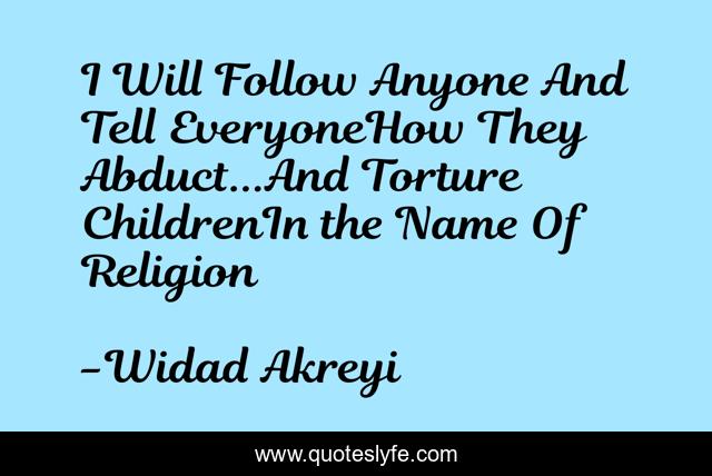 This page presents the quote "I Will Follow Anyone And Tell EveryoneHow They Abduct...And Torture ChildrenIn the Name Of Religion". Author of this quote is Widad Akreyi. This quote is about kobani, widad-akrawi, christians, human-rights, violence-against-women, peace, kobane, civil-society, yazidis,.