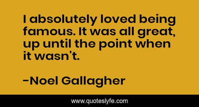 This page presents the quote "I absolutely loved being famous. It was all great, up until the point when it wasn't.". Author of this quote is Noel Gallagher. This quote is about loved, great, point,.