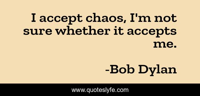 This page presents the quote "I accept chaos, I'm not sure whether it accepts me.". Author of this quote is Bob Dylan. This quote is about dylan, music, chaos,.