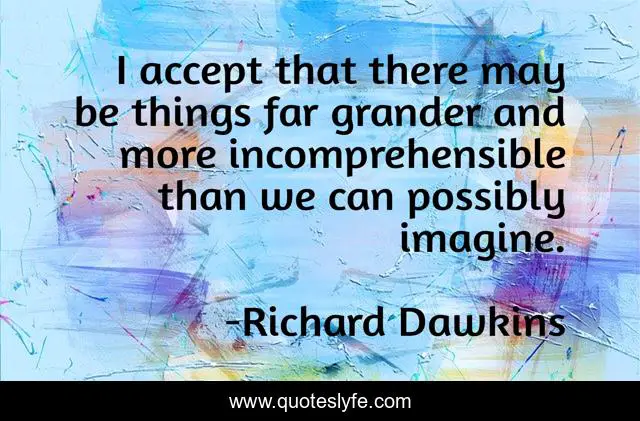 This page presents the quote "I accept that there may be things far grander and more incomprehensible than we can possibly imagine.". Author of this quote is Richard Dawkins. This quote is about may, accept, imagine,.