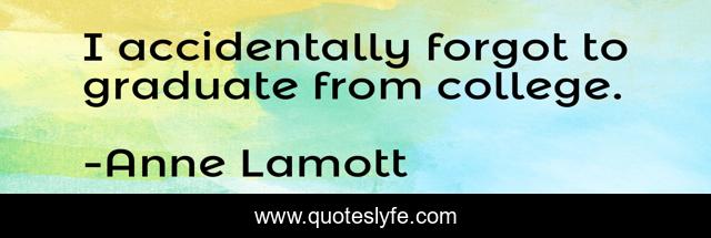 This page presents the quote "I accidentally forgot to graduate from college.". Author of this quote is Anne Lamott. This quote is about graduate, college, forgot,.