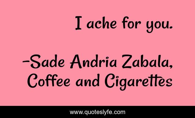 "Sade Andria Zabala, Coffee and Cigarettes Quotes." Quoteslyfe.com, 2025. Sat. 06 Dec. 2025. <https://www.quoteslyfe.com/quote/I-ache-for-you-173016>.