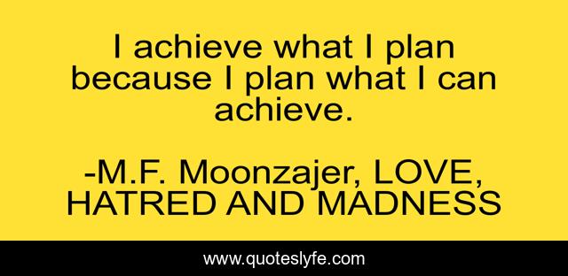 "M.F. Moonzajer, LOVE, HATRED AND MADNESS Quotes." Quoteslyfe.com, 2025. Sun. 07 Dec. 2025. <https://www.quoteslyfe.com/quote/I-achieve-what-I-plan-because-I-253994>.