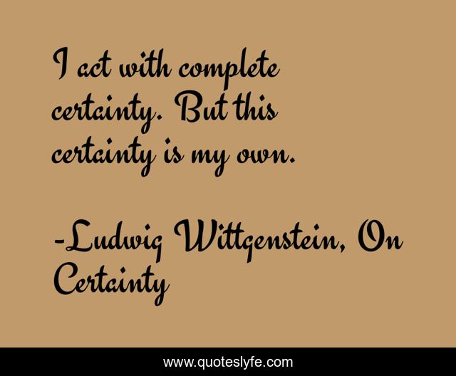 "Ludwig Wittgenstein, On Certainty Quotes." Quoteslyfe.com, 2025. Fri. 05 Dec. 2025. <https://www.quoteslyfe.com/quote/I-act-with-complete-certainty-But-this-222370>.