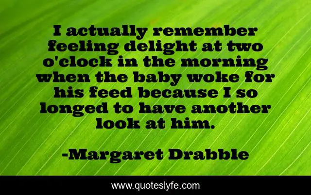 This page presents the quote "I actually remember feeling delight at two o'clock in the morning when the baby woke for his feed because I so longed to have another look at him.". Author of this quote is Margaret Drabble. This quote is about positive, confidence,.