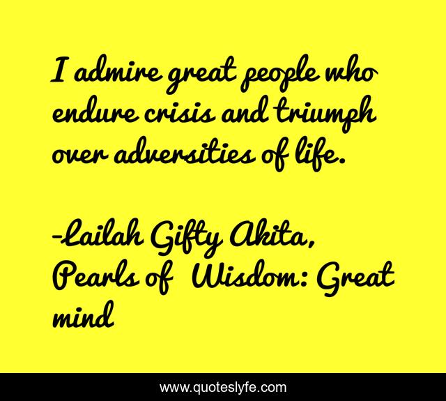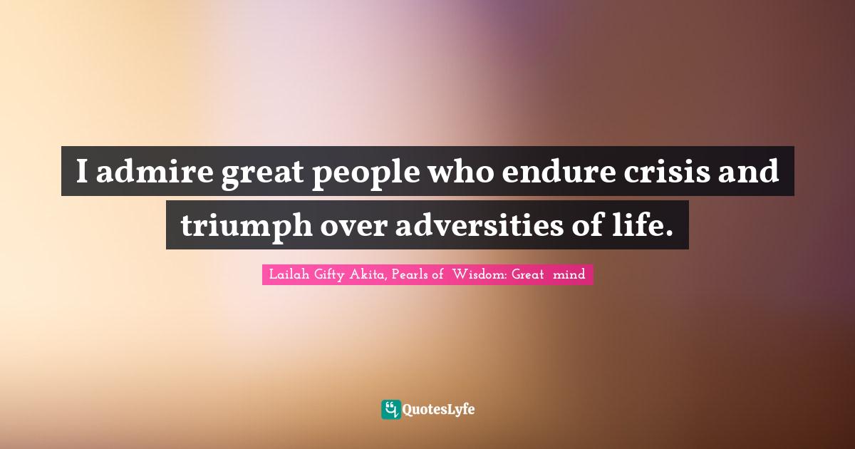 "Lailah Gifty Akita, Pearls of Wisdom: Great mind Quotes." Quoteslyfe.com, 2026. Wed. 14 Jan. 2026. <https://www.quoteslyfe.com/quote/I-admire-great-people-who-endure-crisis-203058>.