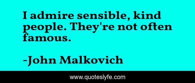 This page presents the quote "I admire sensible, kind people. They're not often famous.". Author of this quote is John Malkovich. This quote is about admire, kind, people,.