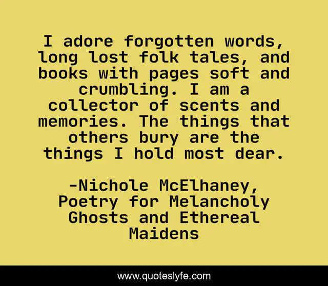 "Nichole McElhaney, Poetry for Melancholy Ghosts and Ethereal Maidens Quotes." Quoteslyfe.com, 2025. Sat. 06 Dec. 2025. <https://www.quoteslyfe.com/quote/I-adore-forgotten-words-long-lost-folk-158240>.