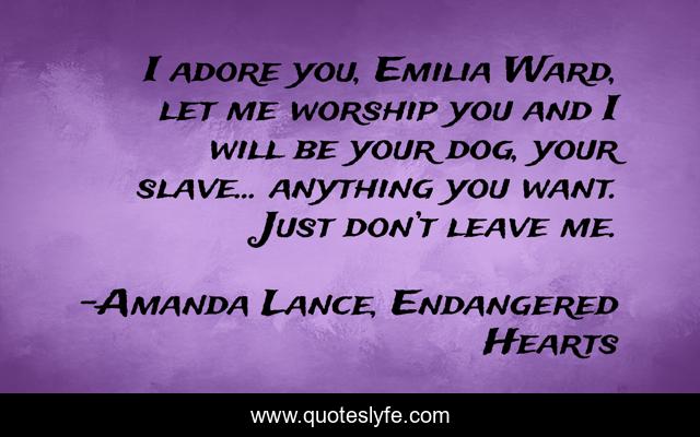 This page presents the quote "I adore you, Emilia Ward, let me worship you and I will be your dog, your slave… anything you want. Just don’t leave me.". Author of this quote is Amanda Lance, Endangered Hearts. This quote is about boyfriend-material, begging, love-hurts,.