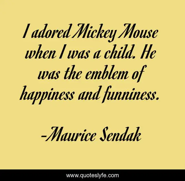 This page presents the quote "I adored Mickey Mouse when I was a child. He was the emblem of happiness and funniness.". Author of this quote is Maurice Sendak. This quote is about mickey mouse, mouse, child,.