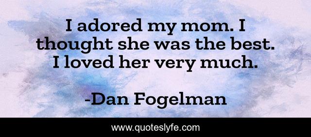 This page presents the quote "I adored my mom. I thought she was the best. I loved her very much.". Author of this quote is Dan Fogelman. This quote is about thought, loved, best,.