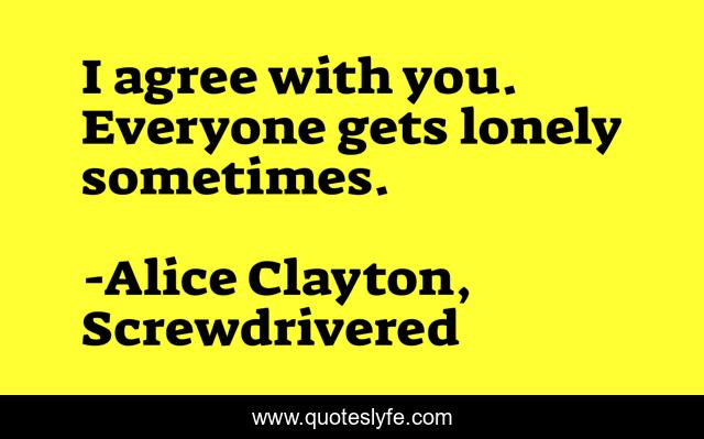 "Alice Clayton, Screwdrivered Quotes." Quoteslyfe.com, 2025. Fri. 05 Dec. 2025. <https://www.quoteslyfe.com/quote/I-agree-with-you-Everyone-gets-lonely-242352>.