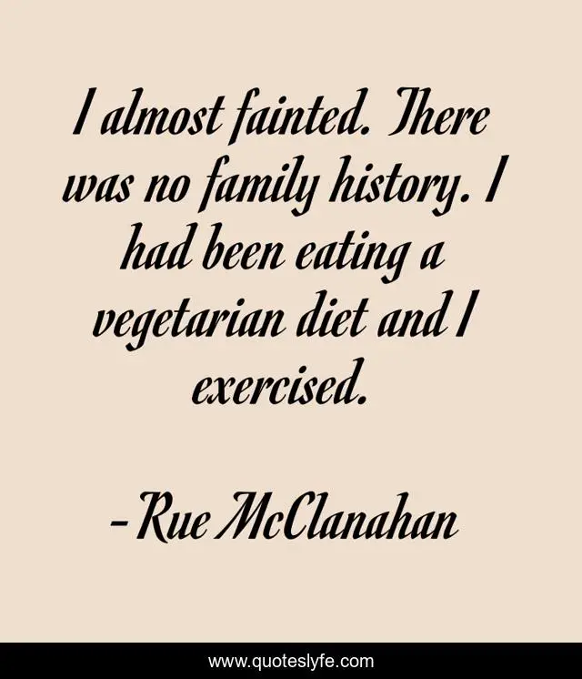 This page presents the quote "I almost fainted. There was no family history. I had been eating a vegetarian diet and I exercised.". Author of this quote is Rue McClanahan. This quote is about eating, family, history,.