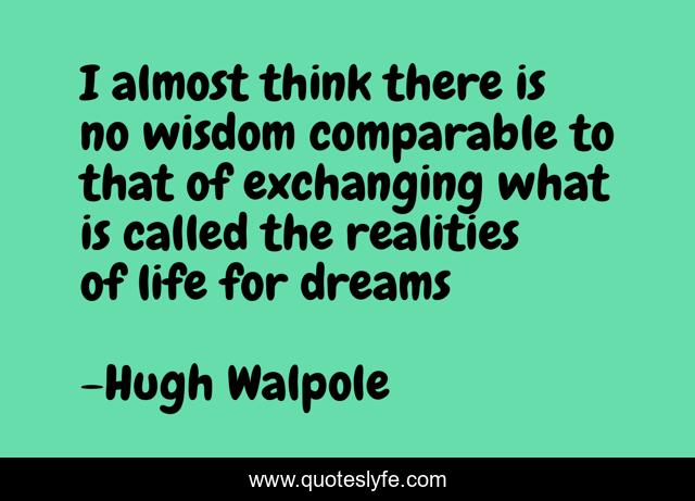 This page presents the quote "I almost think there is no wisdom comparable to that of exchanging what is called the realities of life for dreams". Author of this quote is Hugh Walpole. This quote is about dreams, wisdom,.