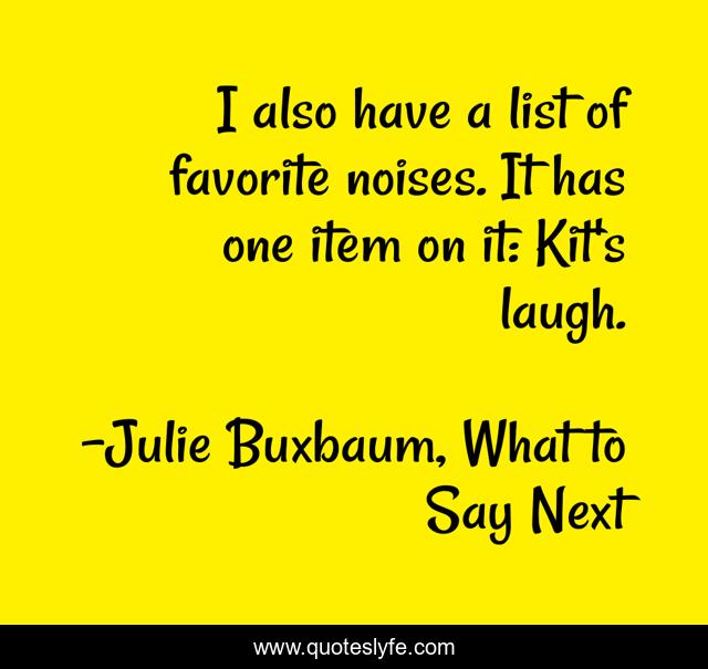 "Julie Buxbaum, What to Say Next Quotes." Quoteslyfe.com, 2025. Sat. 06 Dec. 2025. <https://www.quoteslyfe.com/quote/I-also-have-a-list-of-favorite-19092>.