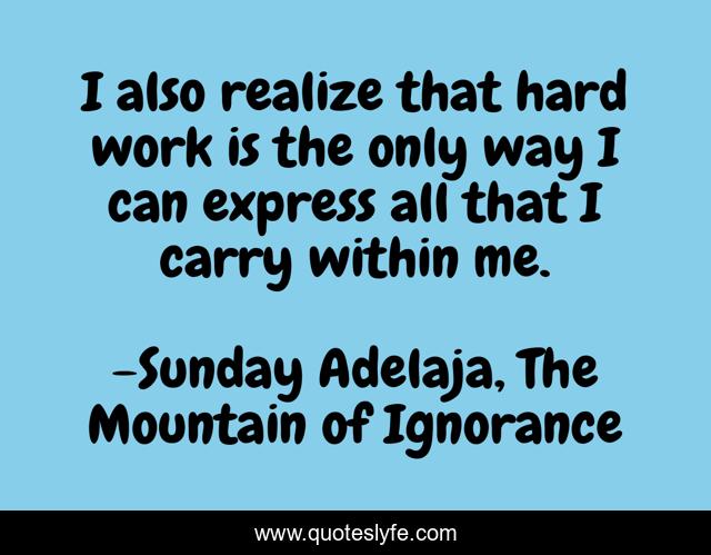 "Sunday Adelaja, The Mountain of Ignorance Quotes." Quoteslyfe.com, 2025. Fri. 05 Dec. 2025. <https://www.quoteslyfe.com/quote/I-also-realize-that-hard-work-is-39428>.