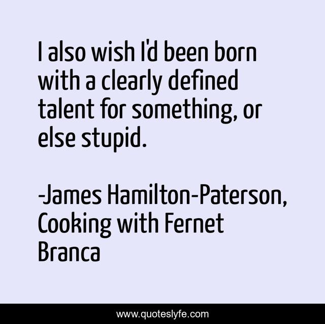 This page presents the quote "I also wish I'd been born with a clearly defined talent for something, or else stupid.". Author of this quote is James Hamilton-Paterson, Cooking with Fernet Branca. .