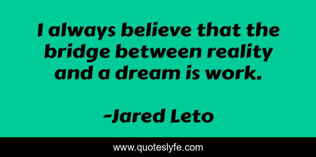 This page presents the quote "I always believe that the bridge between reality and a dream is work.". Author of this quote is Jared Leto. This quote is about life, work, dream, inspiration,.