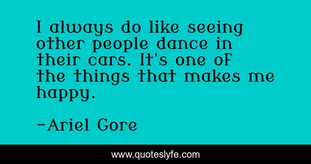 This page presents the quote "I always do like seeing other people dance in their cars. It's one of the things that makes me happy.". Author of this quote is Ariel Gore. This quote is about dance, me, happy,.