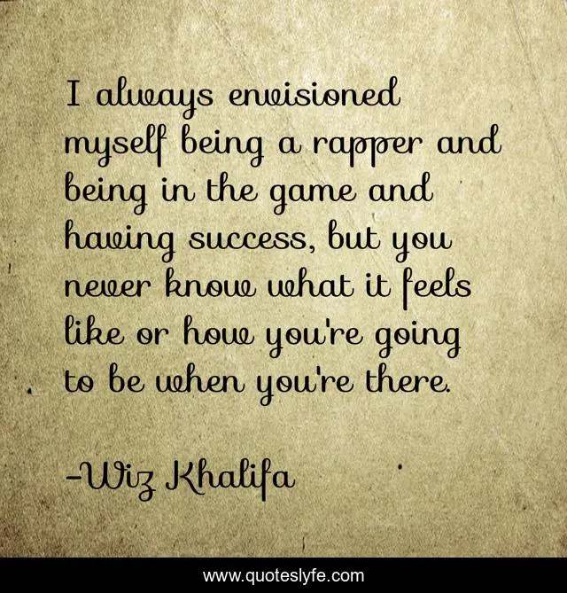This page presents the quote "I always envisioned myself being a rapper and being in the game and having success, but you never know what it feels like or how you're going to be when you're there.". Author of this quote is Wiz Khalifa. This quote is about myself, game,.