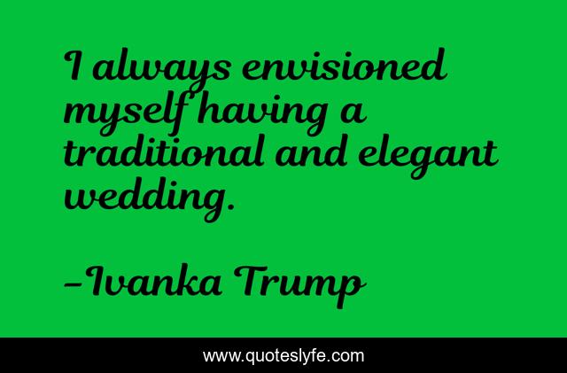 This page presents the quote "I always envisioned myself having a traditional and elegant wedding.". Author of this quote is Ivanka Trump. This quote is about traditional, always, myself,.