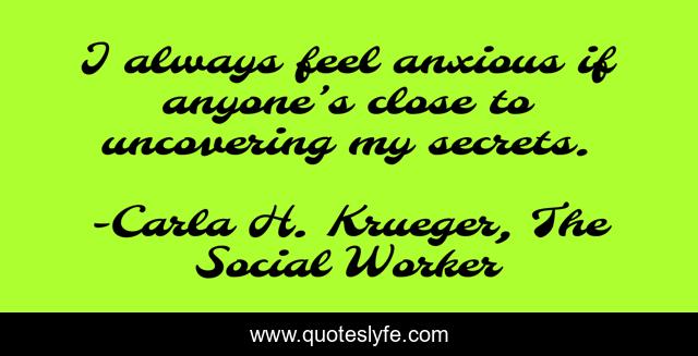 This page presents the quote "I always feel anxious if anyone’s close to uncovering my secrets.". Author of this quote is Carla H. Krueger, The Social Worker. This quote is about anxiety, lies, secrets, social-worker, manipulation, carla-h-krueger, discovery,.
